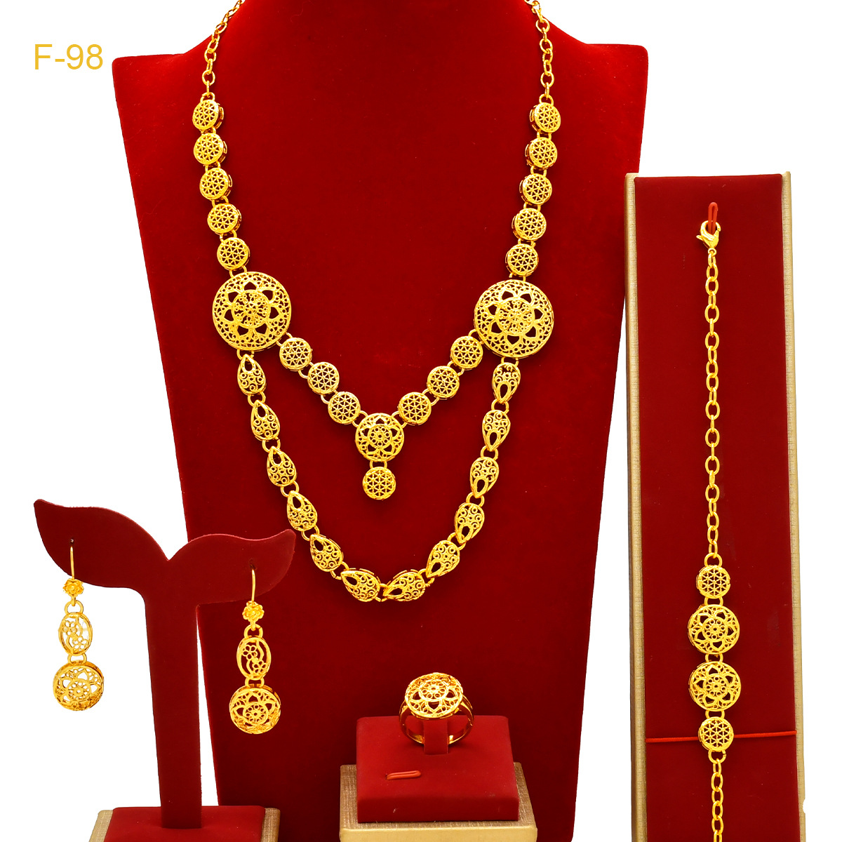 African women's jewelry four-piece set Dubai bridal 24k gold plated necklace bracelet earrings ring jewelry suit