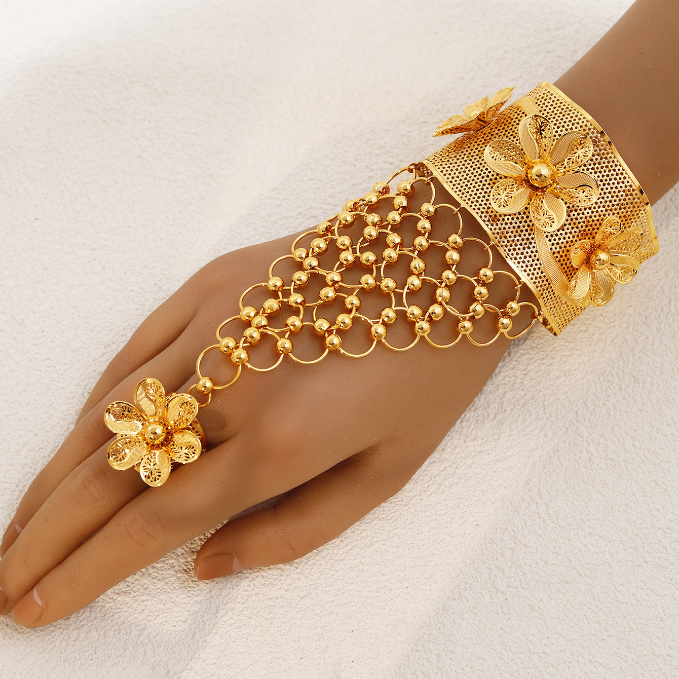A Fashionable Cross-Border Popular Copper Bracelet Batch Flower Sand Gold Dubai Ladies Wedding Gift Jewelry