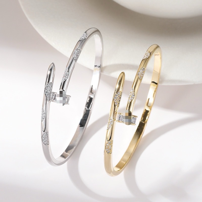 Cross-Border Light Luxury Nail Bracelet with a High-End Feel, European and American Fashion, Copper Plated with Real Gold, Micro-Inlaid Zirconia, Open Bracelet Jewelry for Women