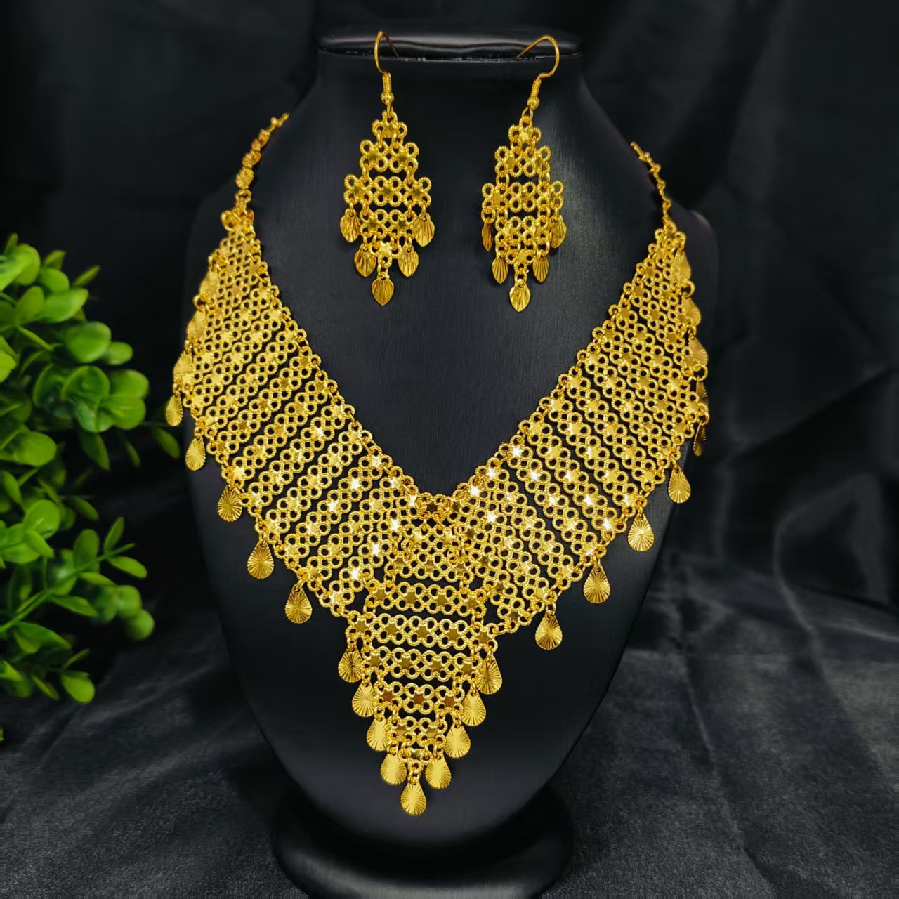Middle East Cross-Border 24K Gold Plated Cut Out Flower Earrings Necklace Set Dubai European and American Bridal Wedding Jewelry
