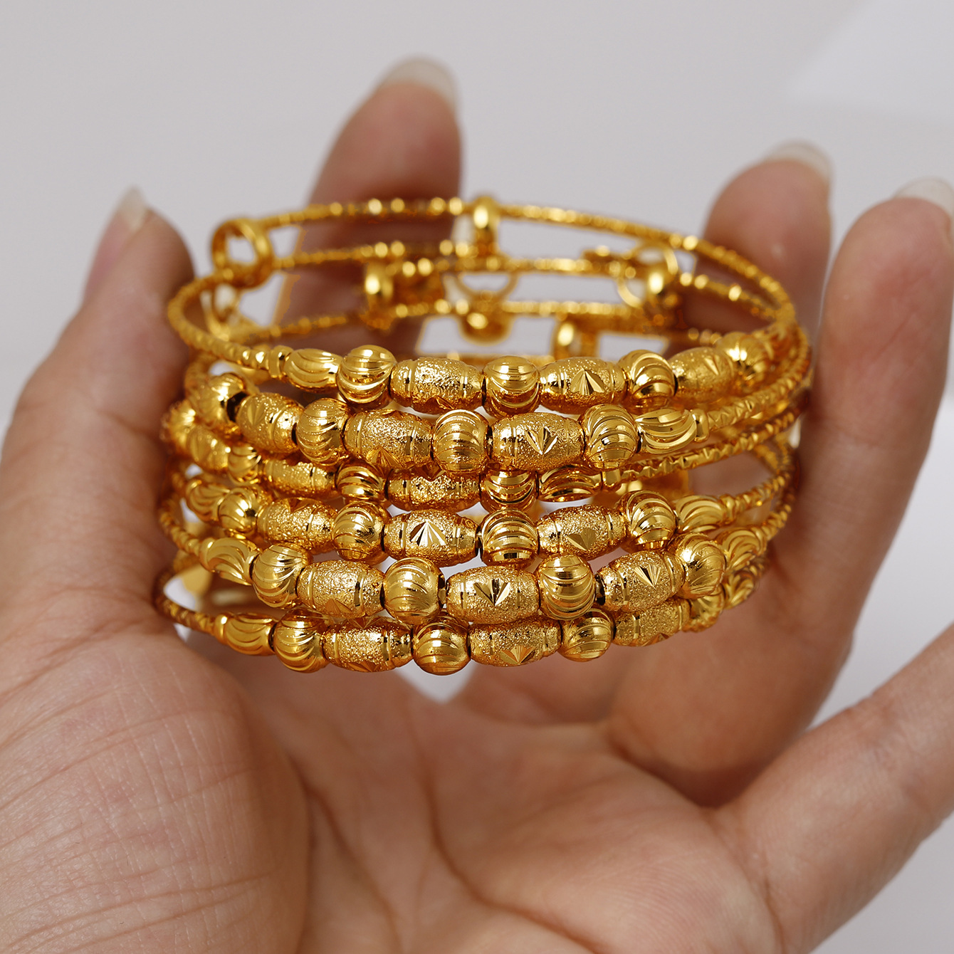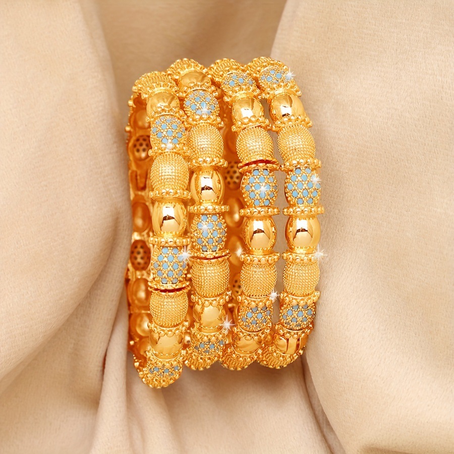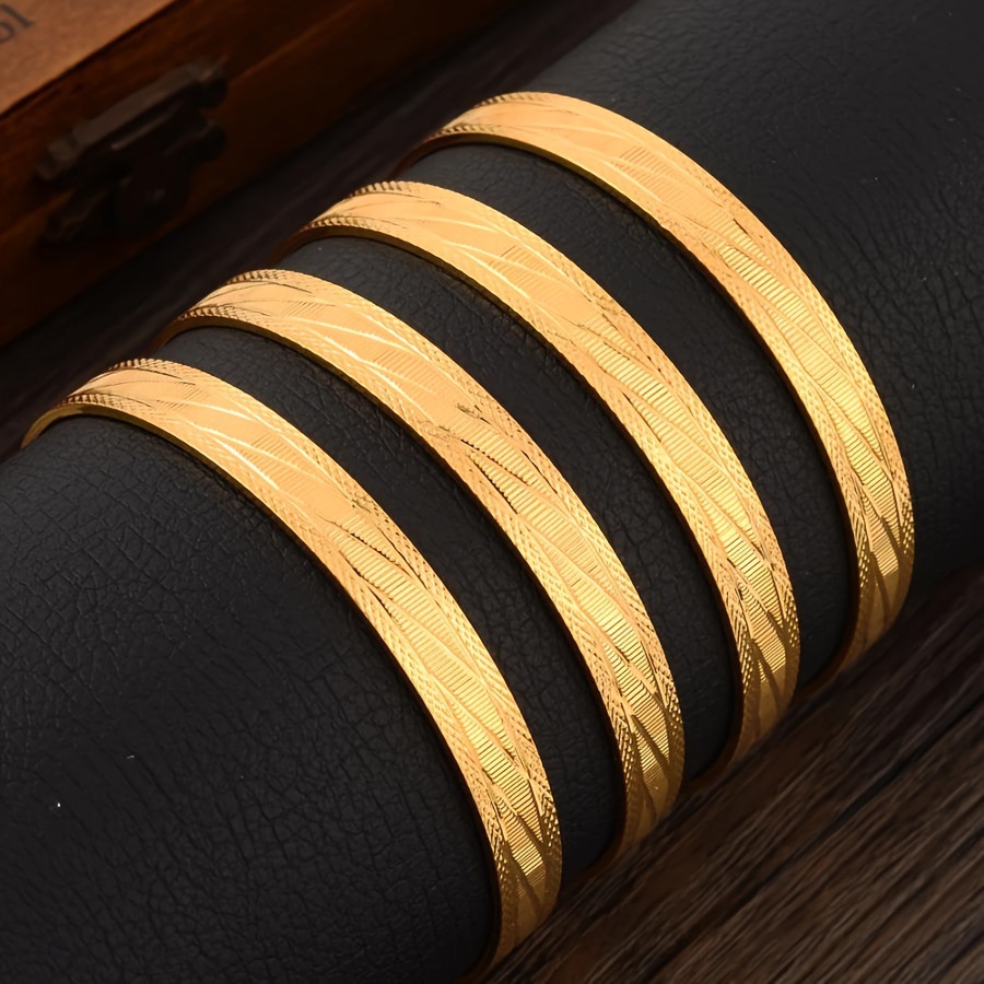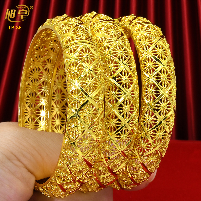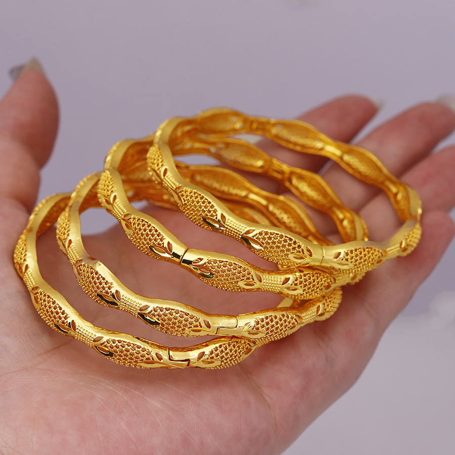 Cross-Border Hot Selling 4 Copper Plated 24K Gold Bracelets Dubai Indian Bridal Accessible Luxury Style Women's Wedding Sand Gold Bracelet Ornaments