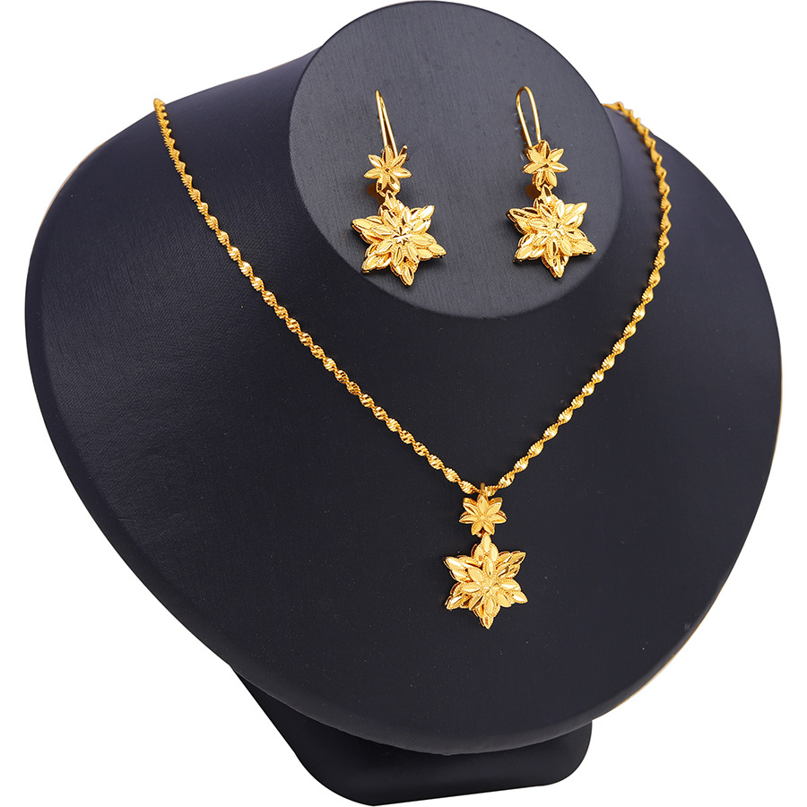 Middle Eastern Cross-border Arab European and American 24K Gold-plated SnowflaKe Jewelry Dubai Women's Wedding Earrings NecKlace Set