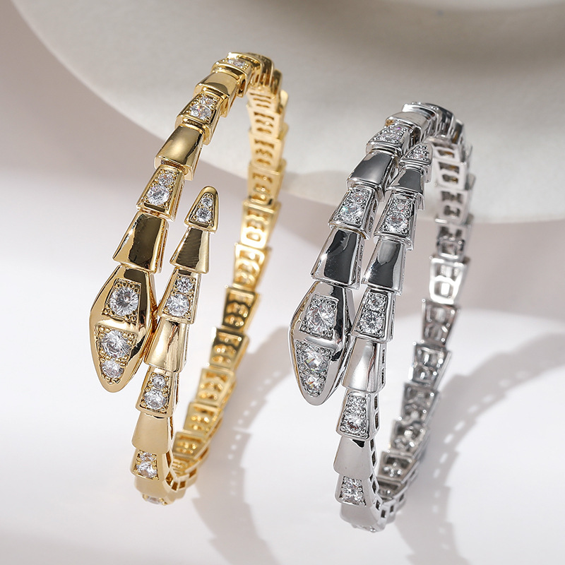 New Retro Style Snake Bracelet Middle East Dubai Gold-Plated Jewelry Cross-Border Zircon Bracelet Ring Open Bracelet for Women