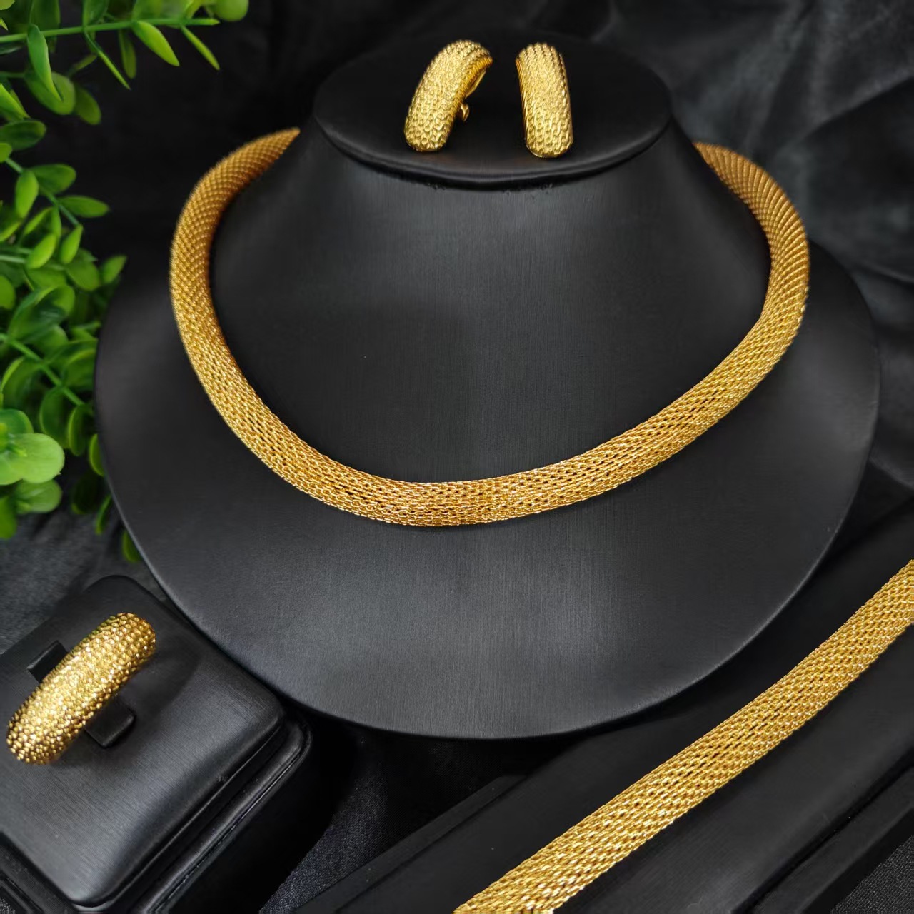 Cross-Border Dubai Gold 18K Necklace, Earrings, Ring, Bracelet, Ethiopian Women's Banquet Jewelry Set