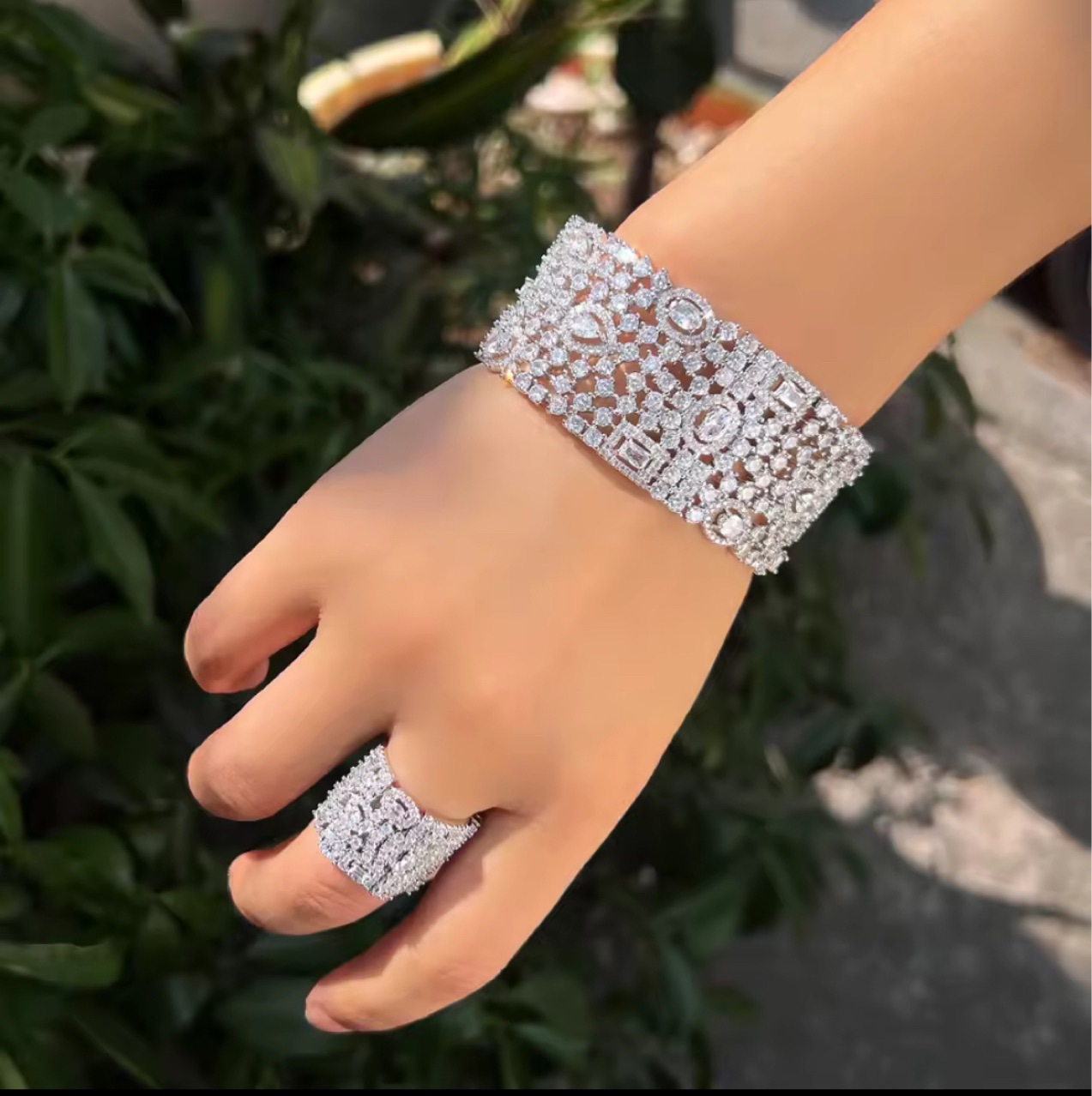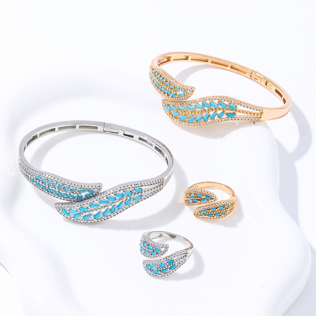 Cubic Zirconia Inlaid Openable Bracelet and Ring Dubai Wedding Bridal Party Jewelry Water Drop 2025 New Model