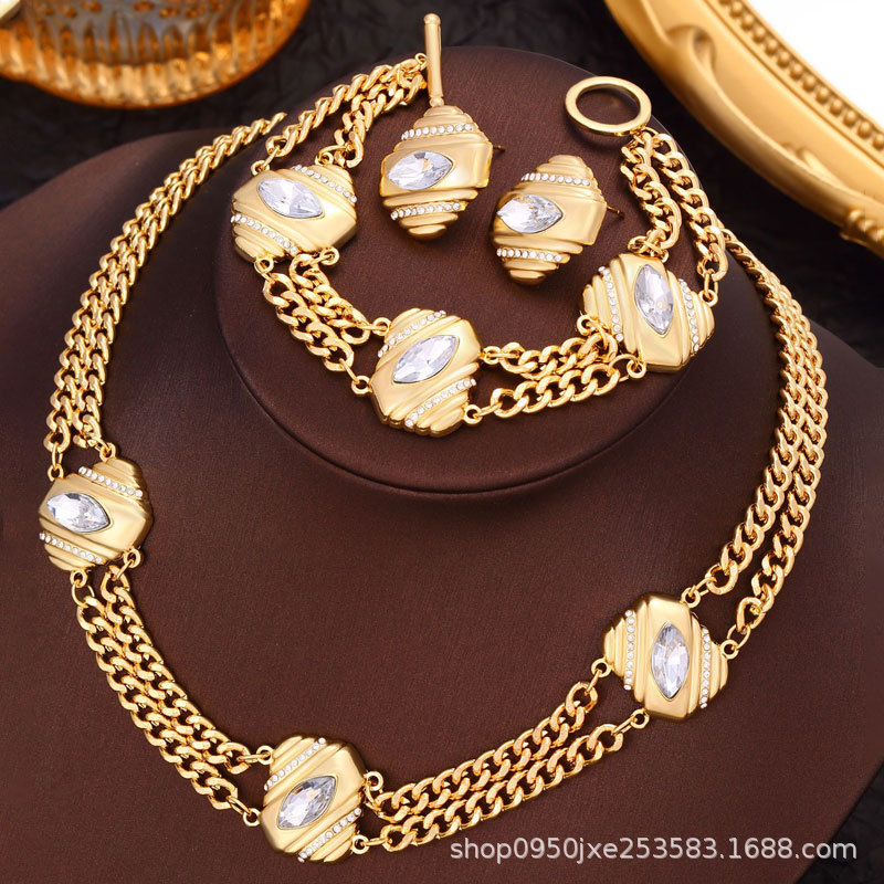 CDD three-piece Middle East Dubai vintage crystal square earrings bracelet necklace jewelry suit cross-border e-commerce new