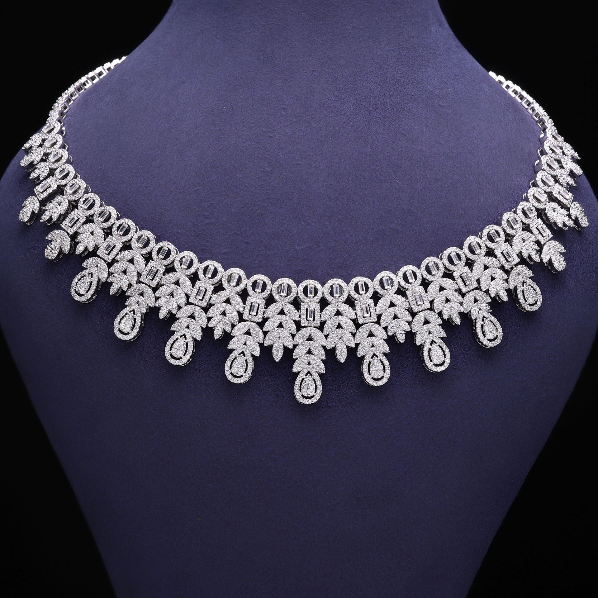 Dubai Exaggerated Luxury Zircon Necklace Earrings suit Bridal Wedding Dress Dinner High Jewelry Festival Wear