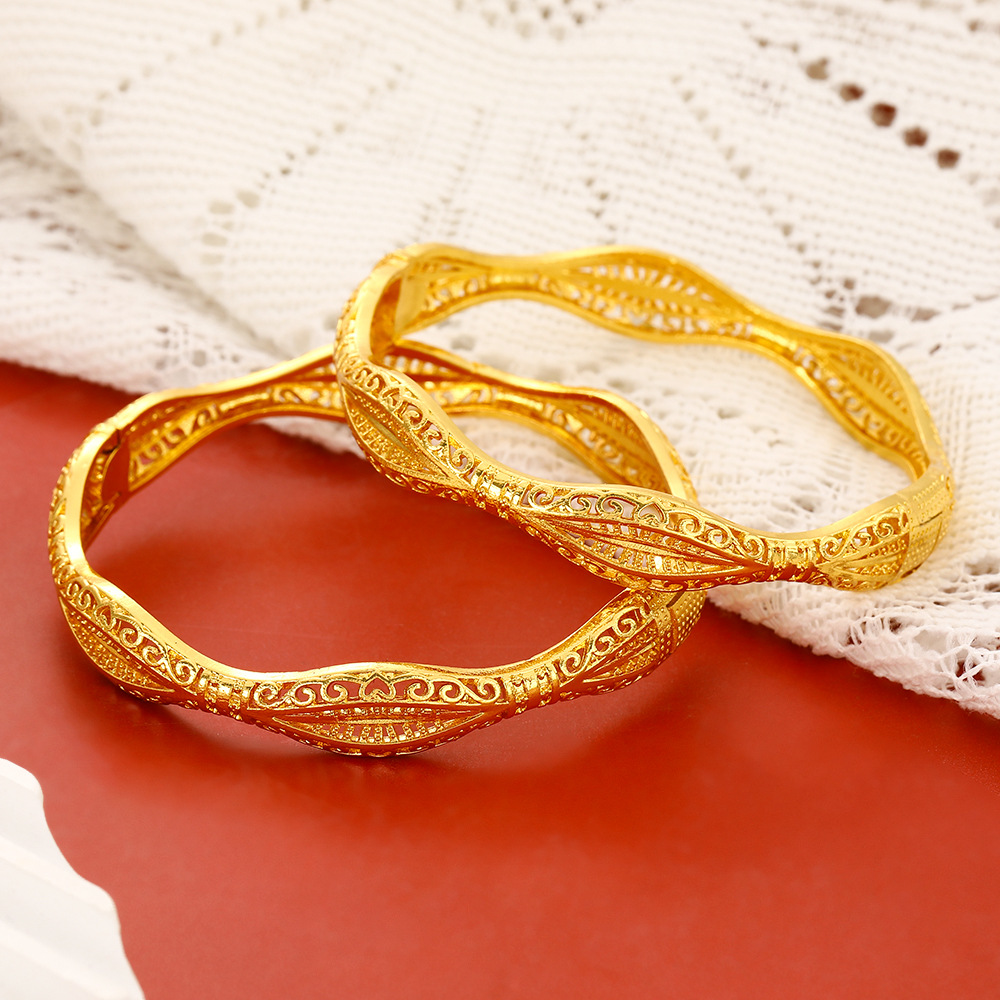 Dropshipping Dubai Women's 24K Gold-Plated Hollow Bracelet Indian Arabian Bride Wedding Jewelry Gold Bracelet