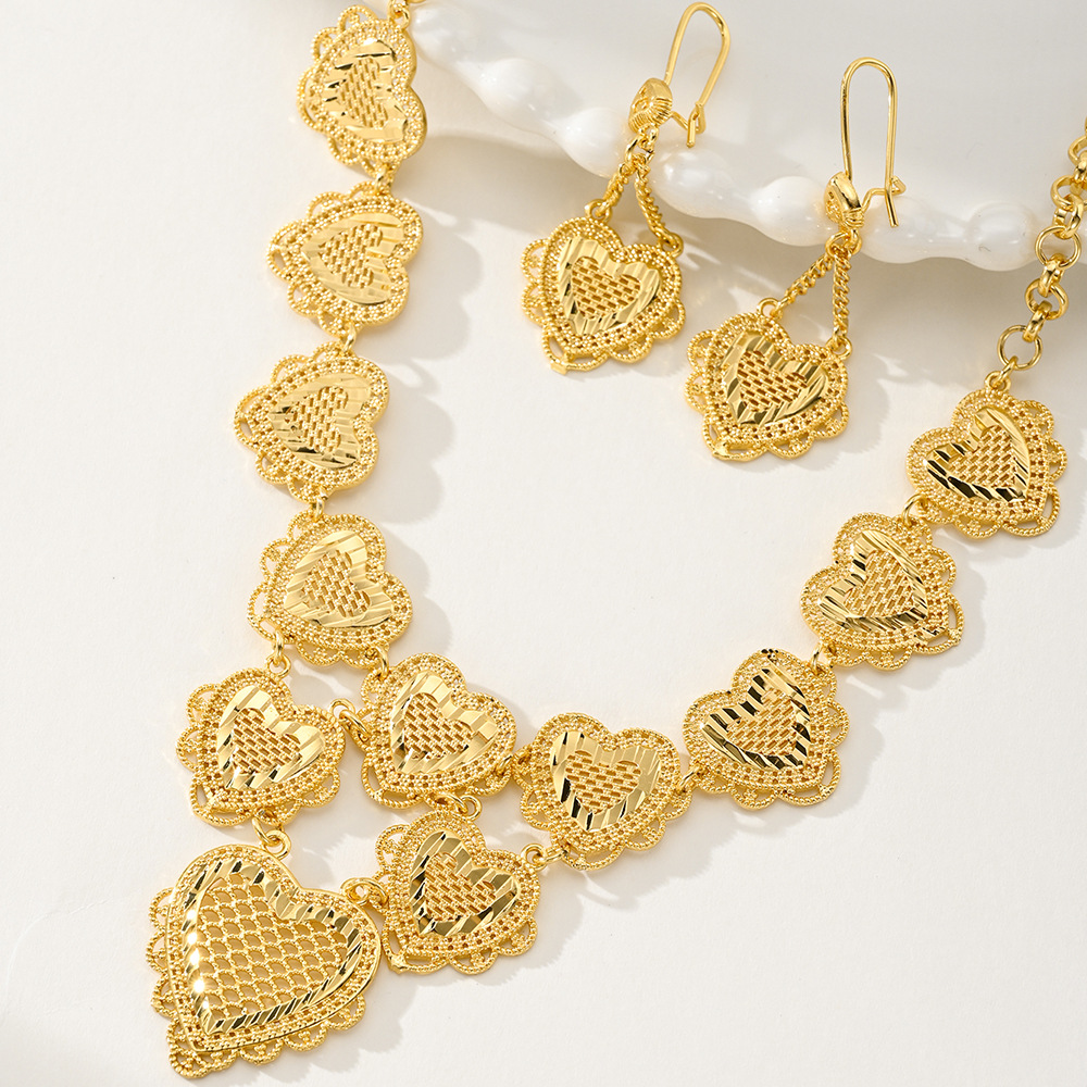 Middle East Dubai Cross Border Sand Gold Love Jewelry suit Nigeria Gold Plated Heart Necklace Earrings Two Piece Set