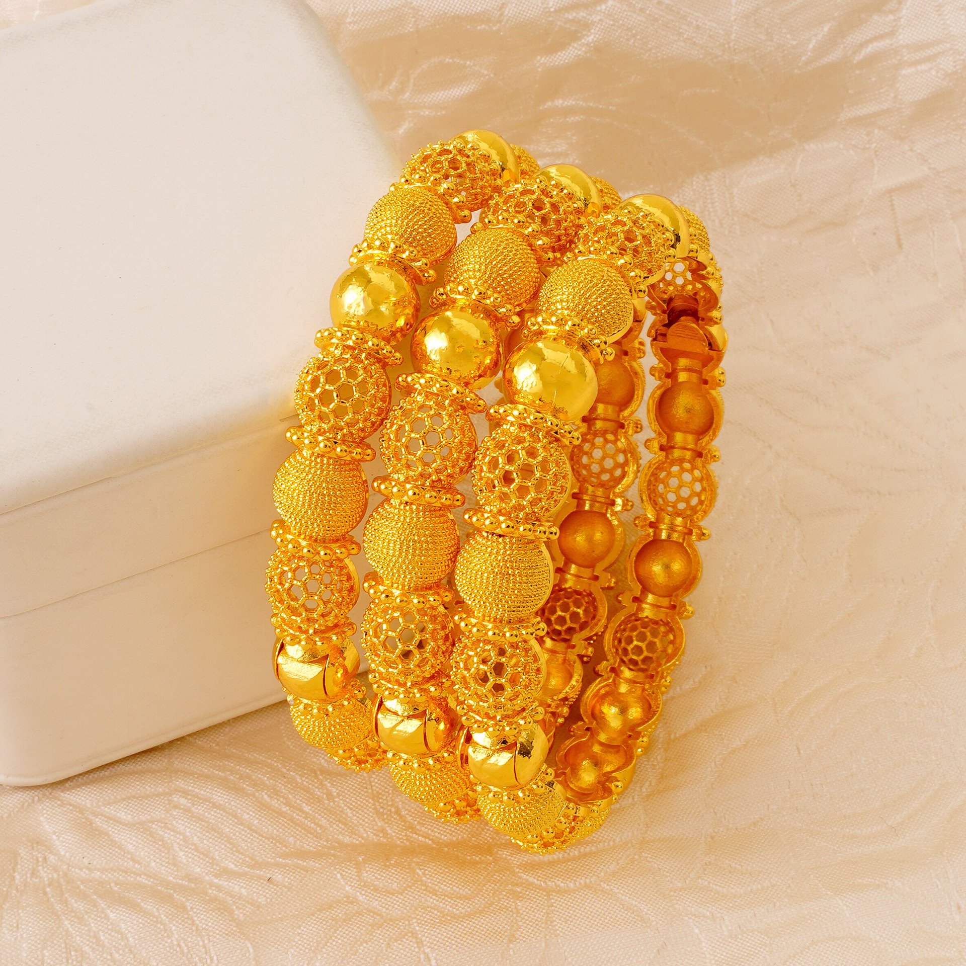 Middle East Cross Border One 24K Gold Plated Open Lucky Bead Bracelet Dubai European and American Women's Bride Wedding Jewelry