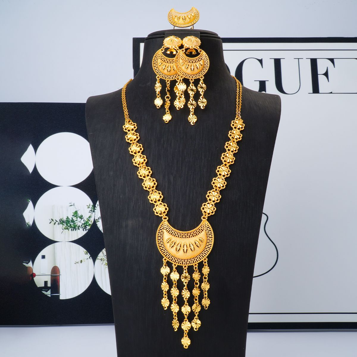 Jewelry2024 Dubai 24k gold-plated jewelry set necklace earrings bracelet ring four-piece set spot wholesale