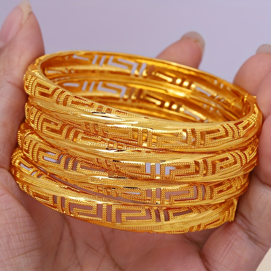 Hollow Kaleidoscope Copper Gold-Plated Bracelet, Classic and Elegant Bracelet, Real Gold Electroplating, Middle Eastern Dubai Gold-Plated Jewelry Wholesale