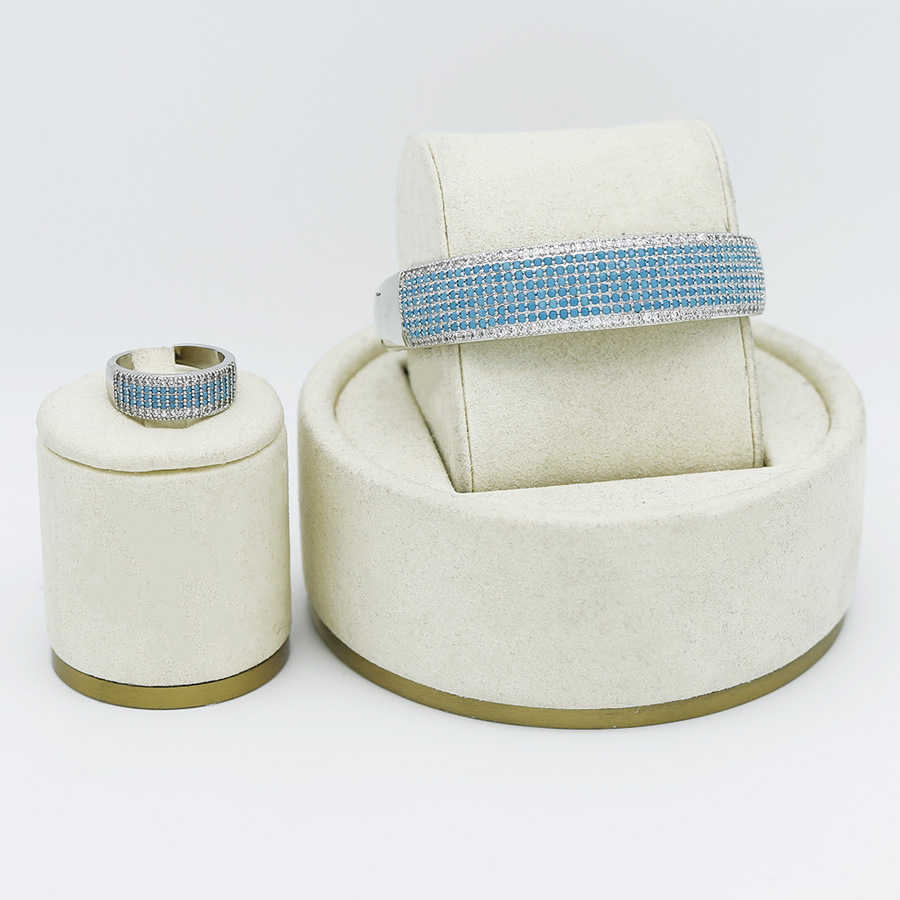 Middle East Cross Border Copper Plated 925 Silver Zircon Inlaid Bracelet Ring Two-piece Dubai Bride Wedding Jewelry for Women