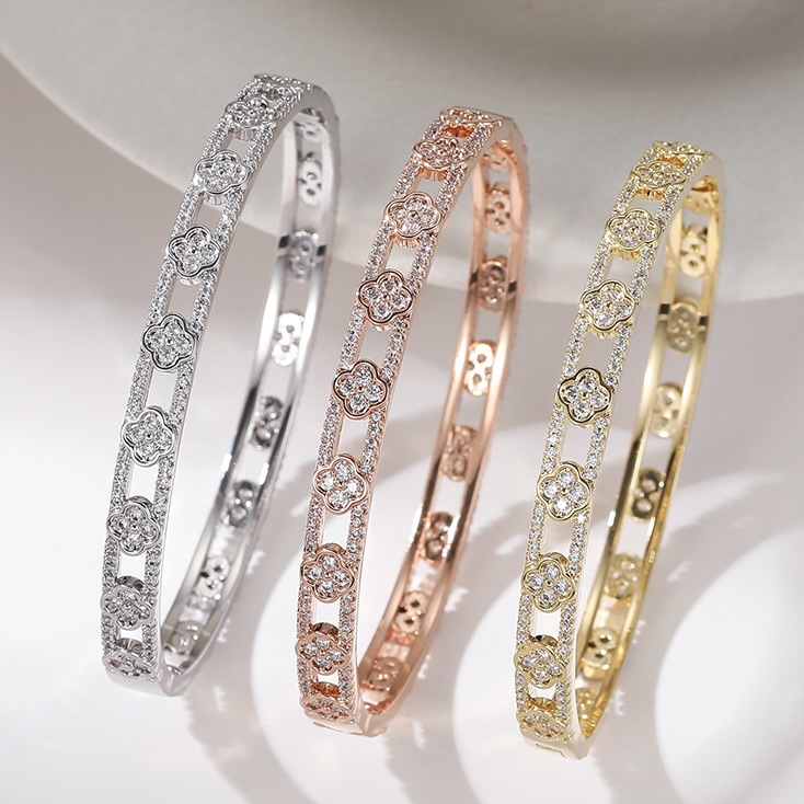 Cross-Border Gold-Plated Bracelet Hollow Four-Leaf Clover Dubai Wedding Indian Nigerian Women's Bridal Sand Gold Bracelet