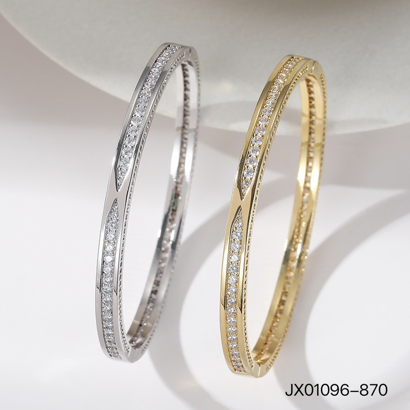 Light Luxury Full Zirconium Bracelet Double-Sided Zircon Real Gold Electroplated Copper Bracelet Dubai Gold-Plated Jewelry Wholesale Concealed Buckle Design
