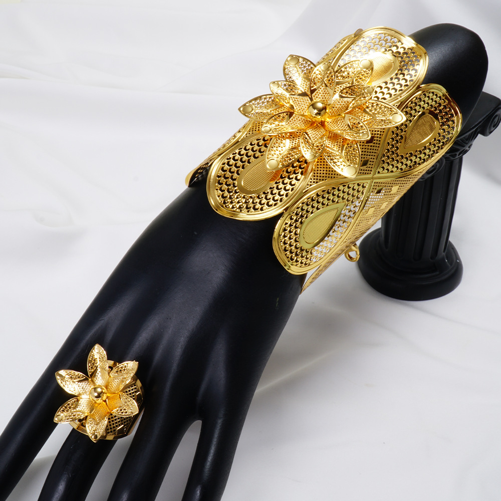 Dubai Bride Brass Flower Large Bracelet Ring Nigerian Ladies Wedding Banquet Bracelet Ring Gift Now