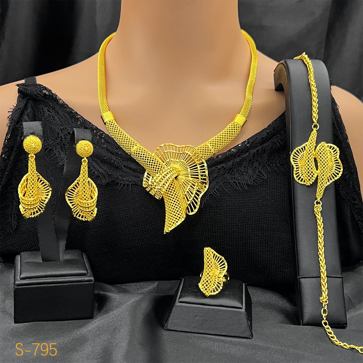 Middle East Dubai 24K Gold-Plated Bridal Necklace Earrings Ring Bracelet Indian Women's Jewelry Four-Piece Set in Stock