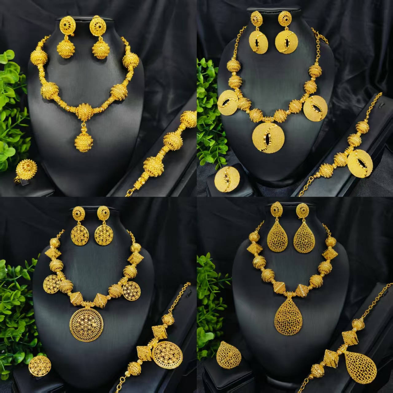 Dubai 24K Gold Plated Bridal Set Necklace Earrings Bracelet Ring India Nigeria Jewelry Four Piece Set Batch