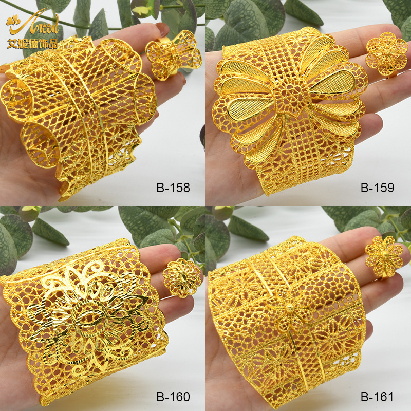 European and American fashion Dubai hot gold jewelry Middle East India bride wedding hollow ring bracelet in stock wholesale