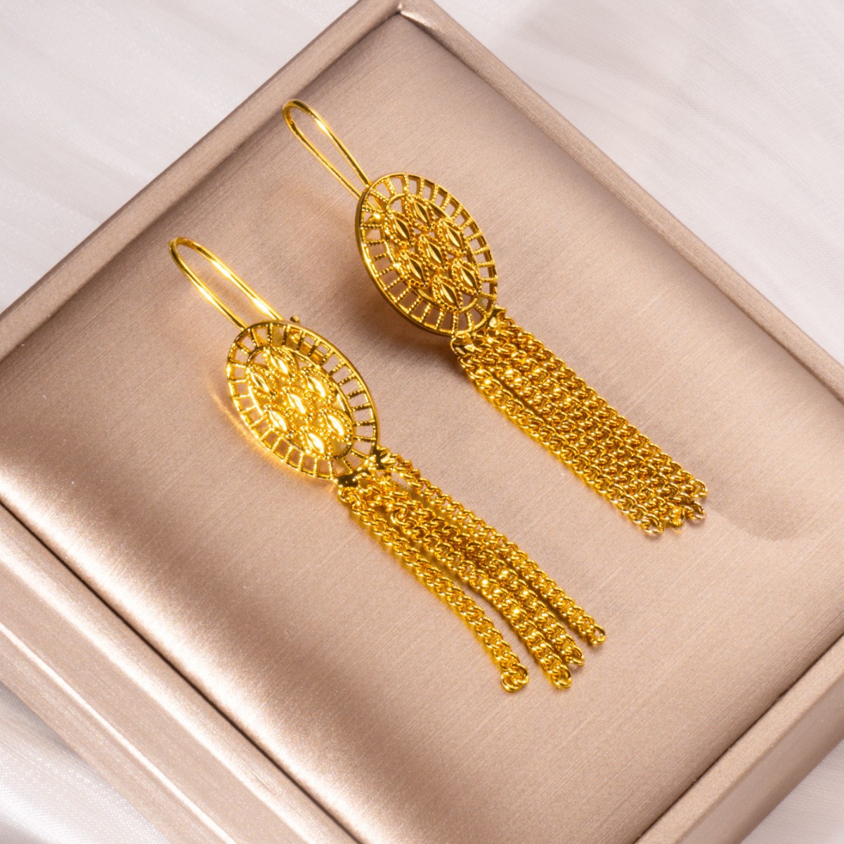 Huixing Jewelry Middle Eastern Bride Gold-Plated Long Earrings Wedding Jewelry Pendant Earrings Wholesale Dubai 24K Copper Earrings