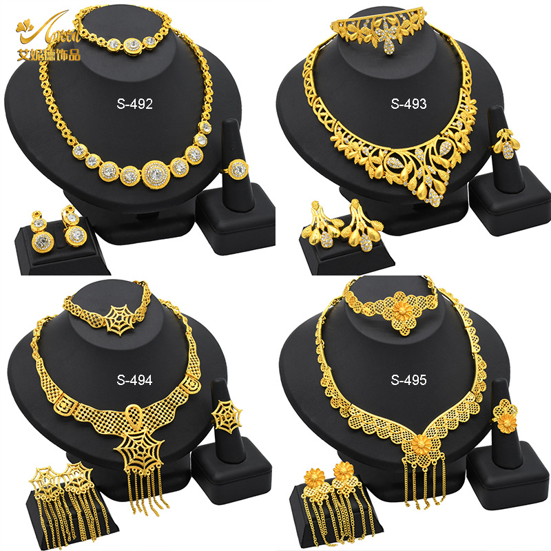 Yiwu bride jewelry jewelry Dubai Middle East jewelry set necklace ring earrings set spot wholesale