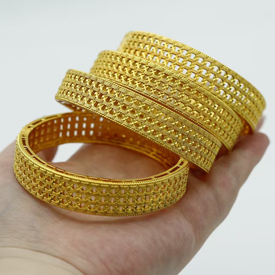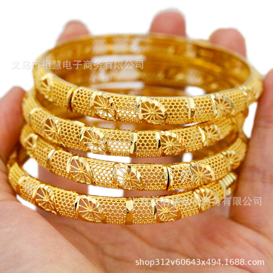 Wholesale 24K Dubai Women Copper Bracelet Ethiopian Fashion Golden Bride Wedding Bracelet Jewelry Gift