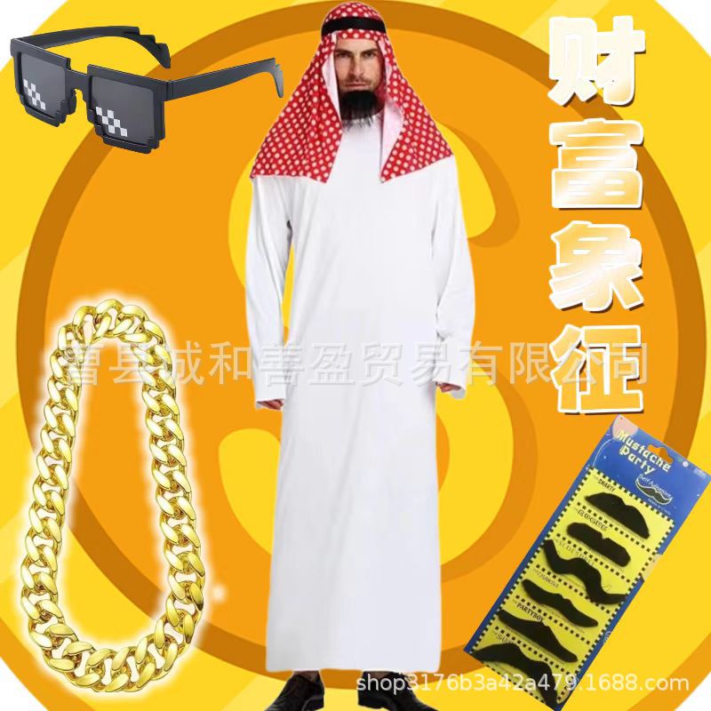 Funny Halloween Cos Costume Middle East Dubai Rich Adult Arabic Birthday Funny Clothes Dress up Party