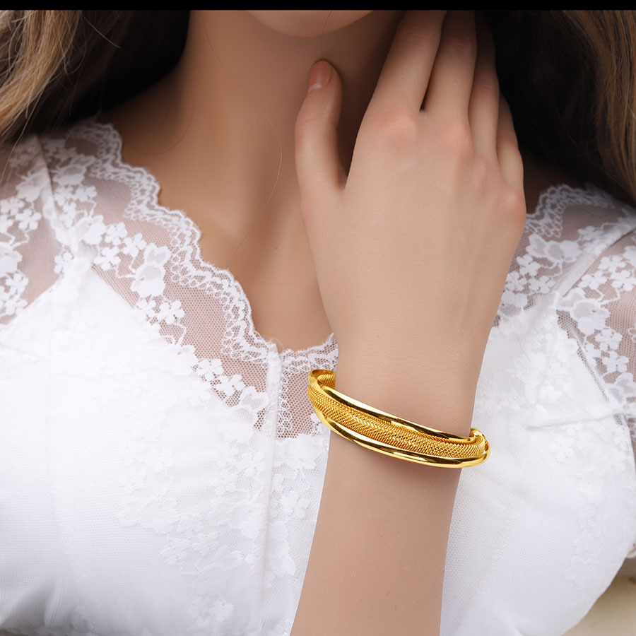 Hot Selling Open Copper Bracelet 24K Gold Plated Dubai Bridal Bracelet Indian Sand Gold Bracelet Fashionable European and American Ring