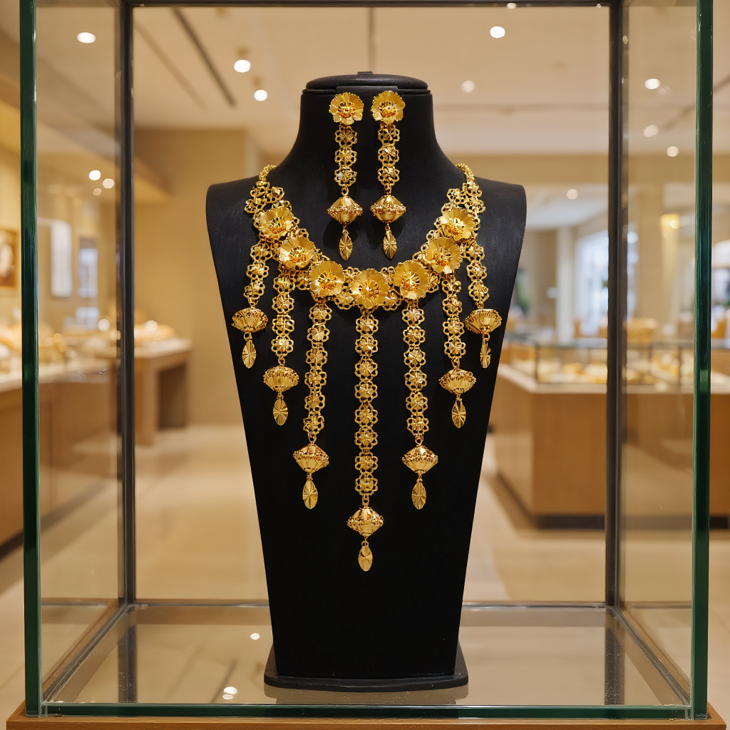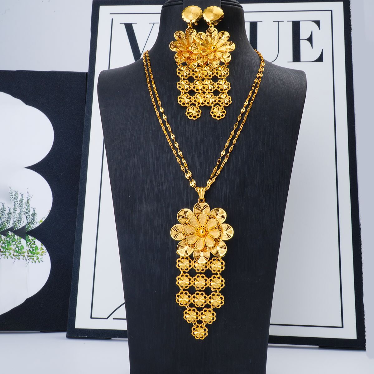 European and American Cross-Border Middle East Dubai Ladies Bride Wedding Jewelry Earrings Necklace Set