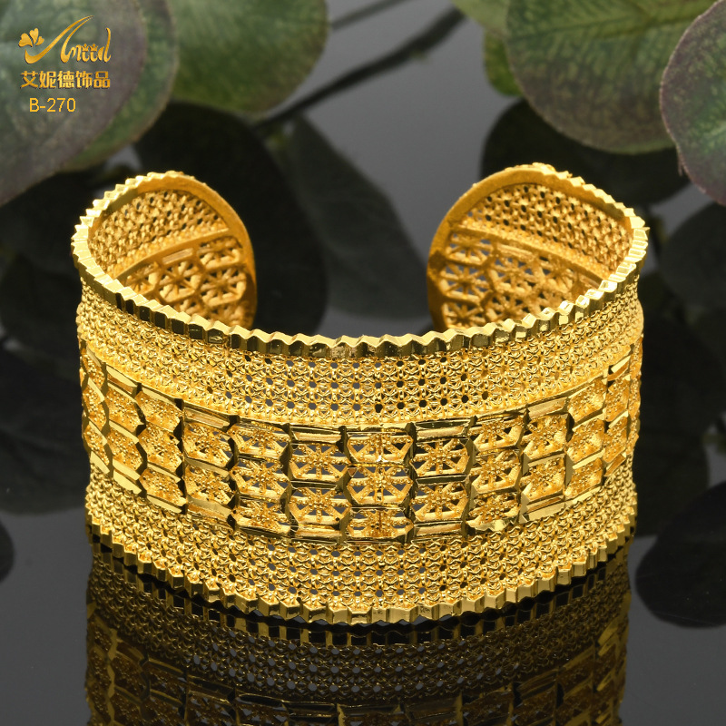 Cross-Border 24k gold-plated exquisite open large copper bracelet Dubai Women's vintage jewelry jewelry sand gold bracelet wholesale