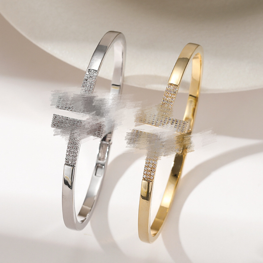 T Brand Double t Bracelet Light Luxury Zircon Bangle for Women with Diamonds Niche Design Versatile Dubai Gold-Plated Jewelry Wholesale