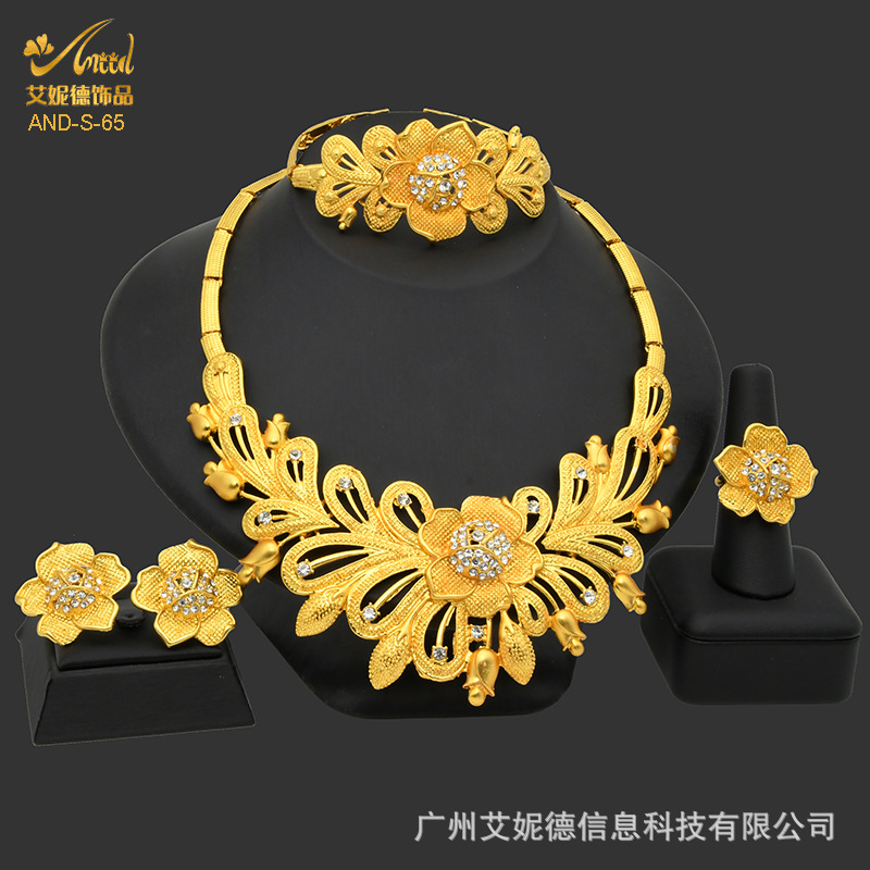 Cross-border Middle East Dubai 24k jewelry explosive jewelry set necklace earrings bracelet ring four-piece wholesale