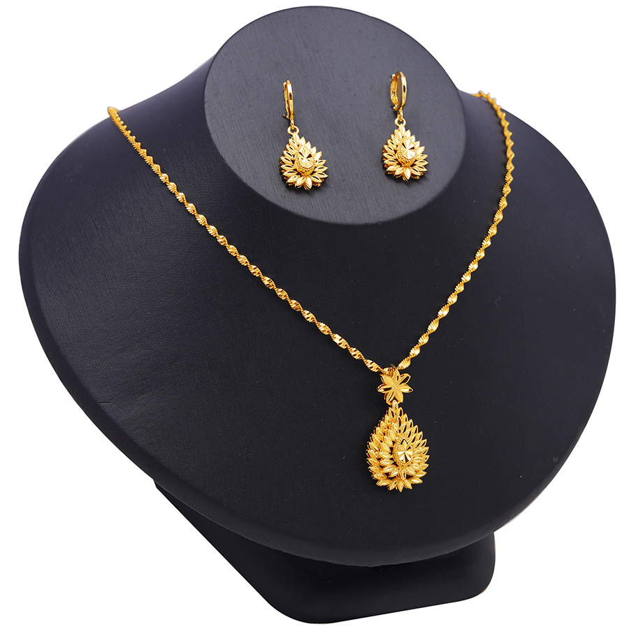 Cross-border hot sale 24K Gold jewelry earrings 2023 jewelry suit Middle East Dubai bridal necklace earrings hand