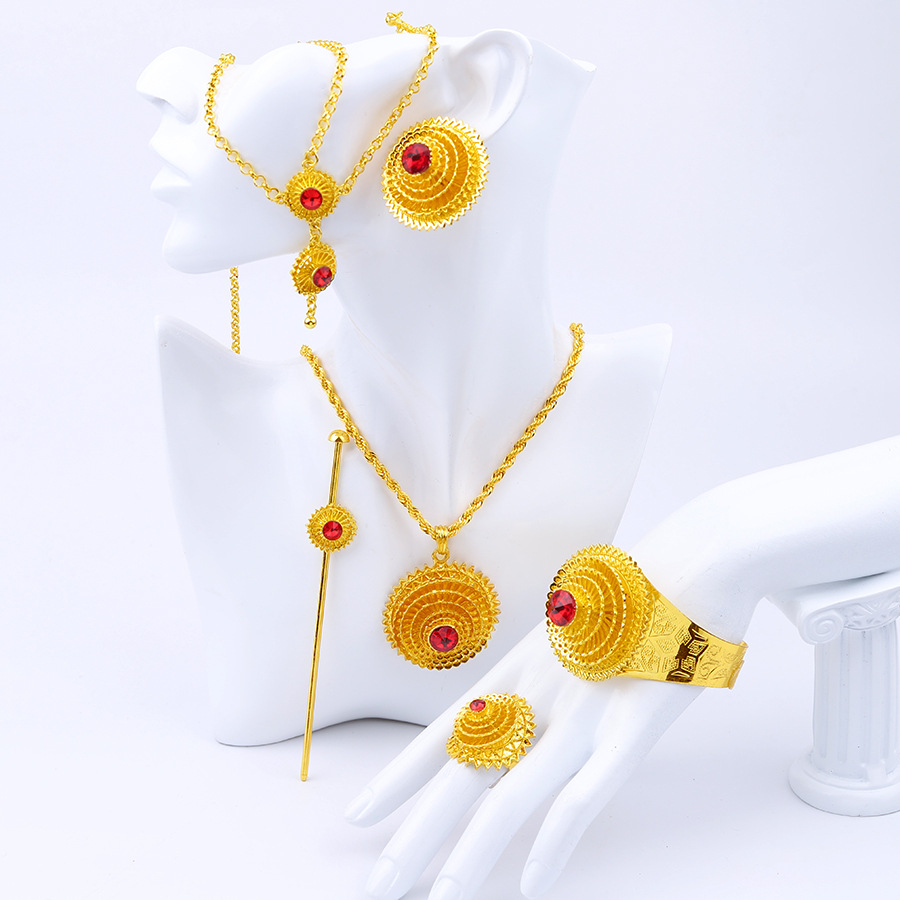 Middle East Dubai Hot Sale Gold Plated Jewelry suit Vietnam Bride Wedding Necklace Ring Earrings Bracelet Jewelry Wholesale