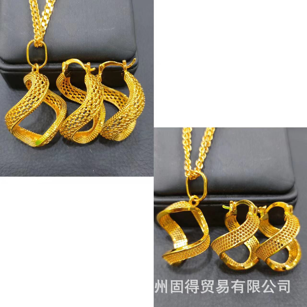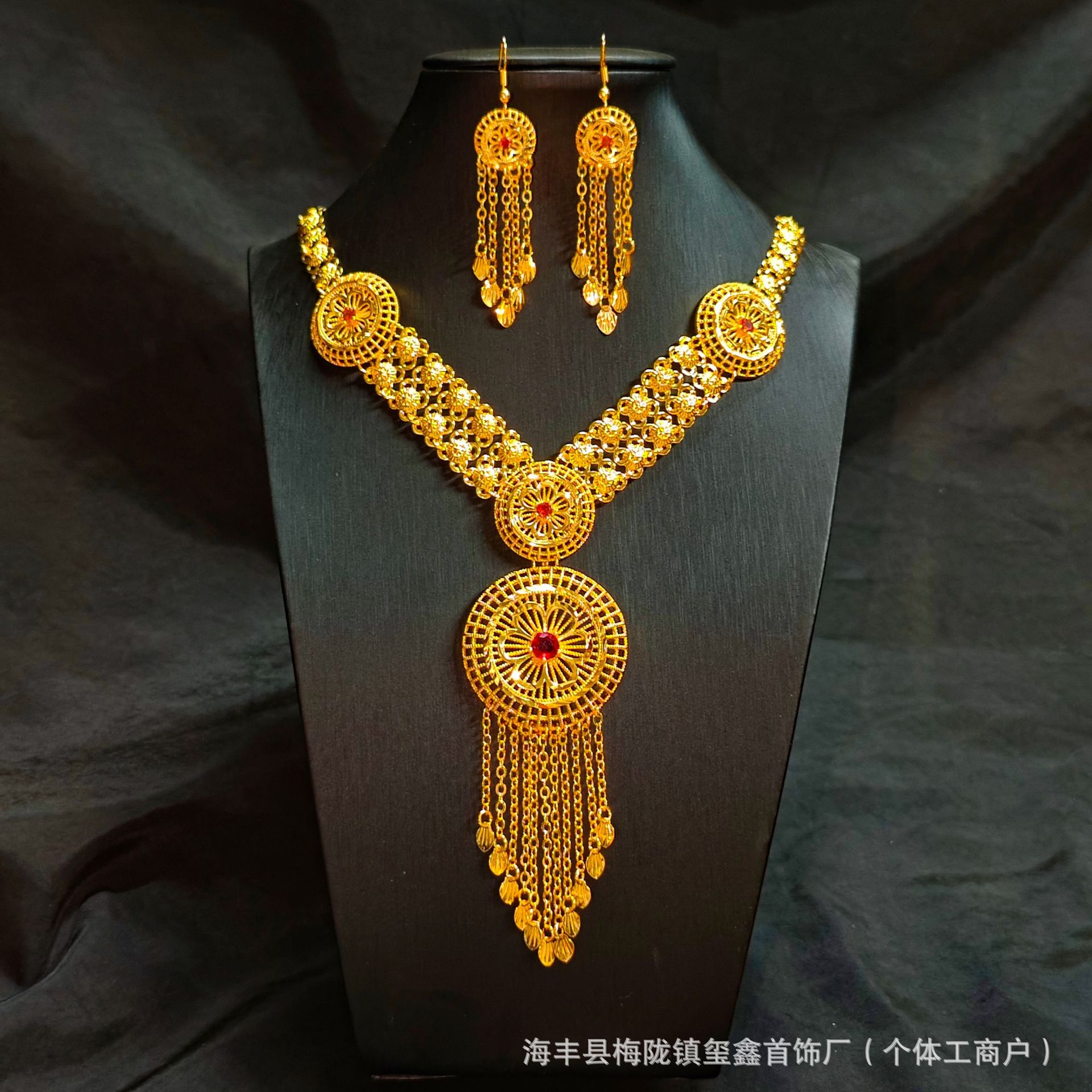 Cross-border Dubai Middle East 24K Gold Jewelry African Bride Jewelry suit Saudi Women Necklace Bracelet Earrings Ring