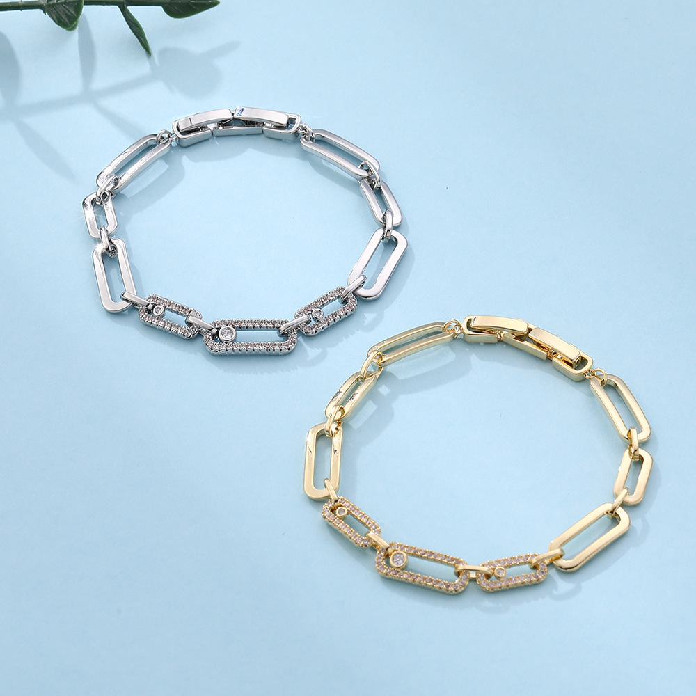 Cross-Border European Style Couple Bracelet Geometric Oval Super Flash Inlaid Zircon Jewelry Bracelet Men's Exquisite Fashion Jewelry