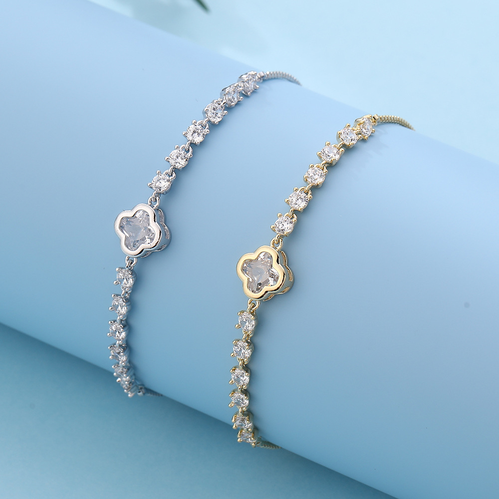 New Fashion Four-Leaf Clover Bracelet Full of Diamonds and Zircons Korean Style Jewelry Bracelet for Women to Wear at Parties Super Flash Bracelet Wholesale