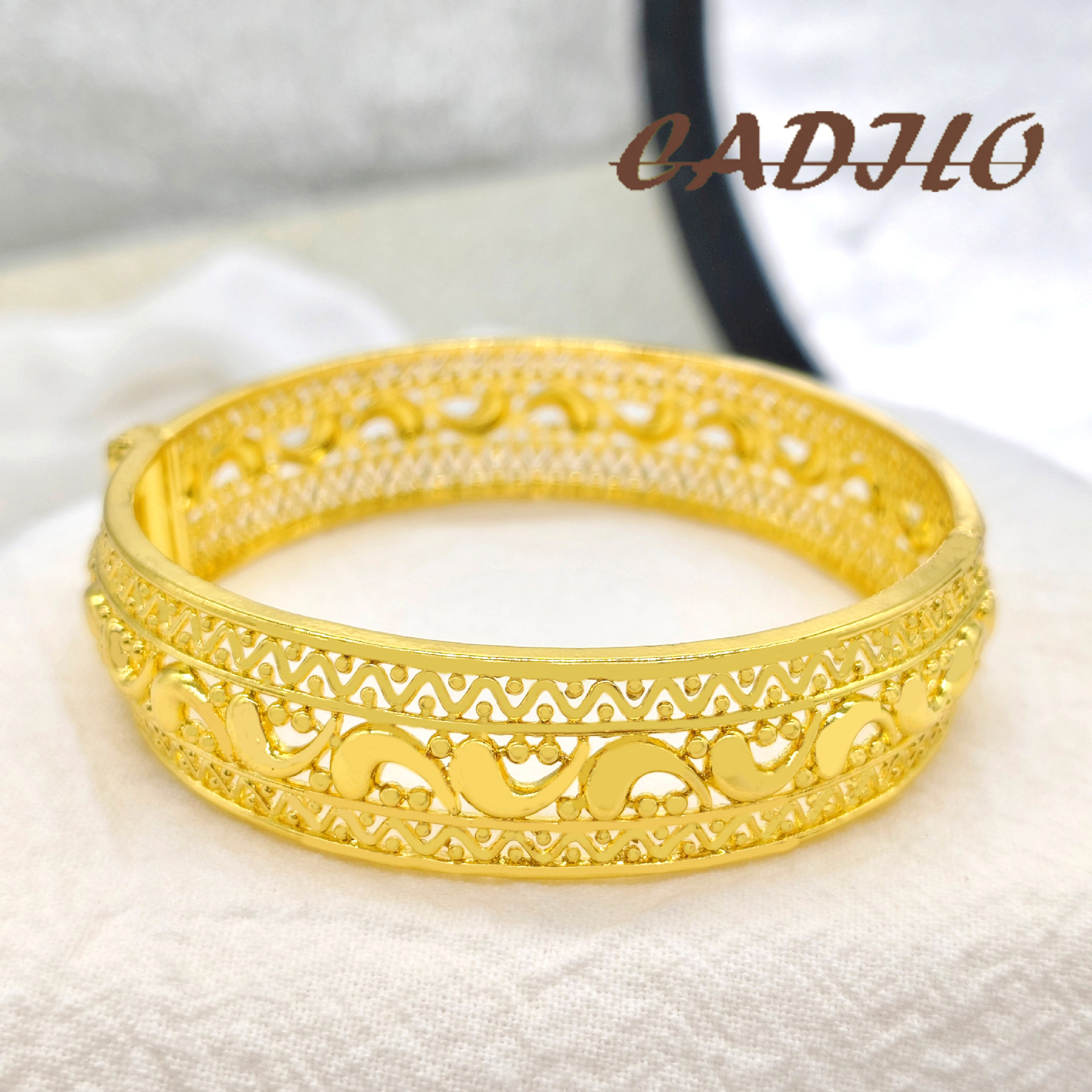 Cadilo Middle Eastern Women's Wedding Bracelet Indian Dubai Gold-Plated Copper Hollow Carved Bracelet Open Bracelet