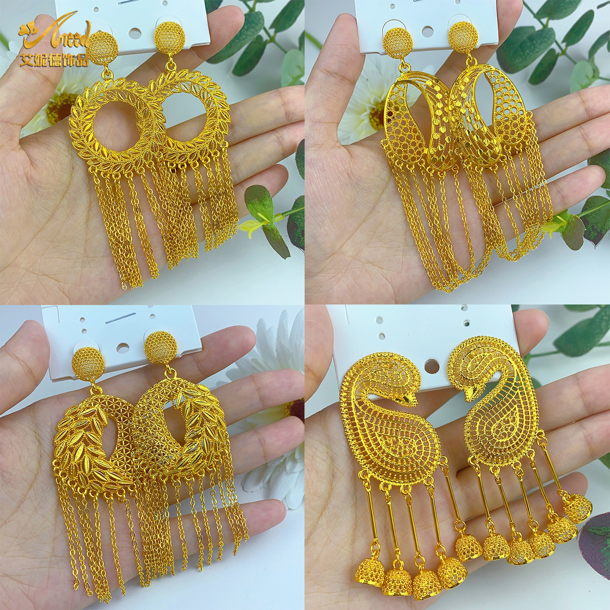 Enid Middle East Bride Gold Plated Long Earrings Wedding Jewelry Pendant Earrings Wholesale Dubai 24k Copper Earrings