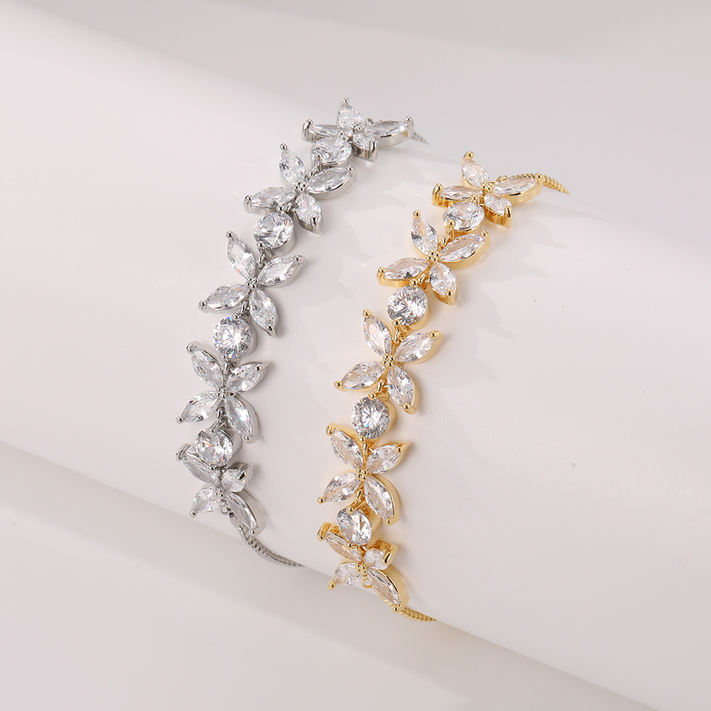 Temperament Full Diamond Butterfly Flower Crystal Bracelet Summer Women's High-quality Zircon Inlaid Cross-border E-commerce Bracelet