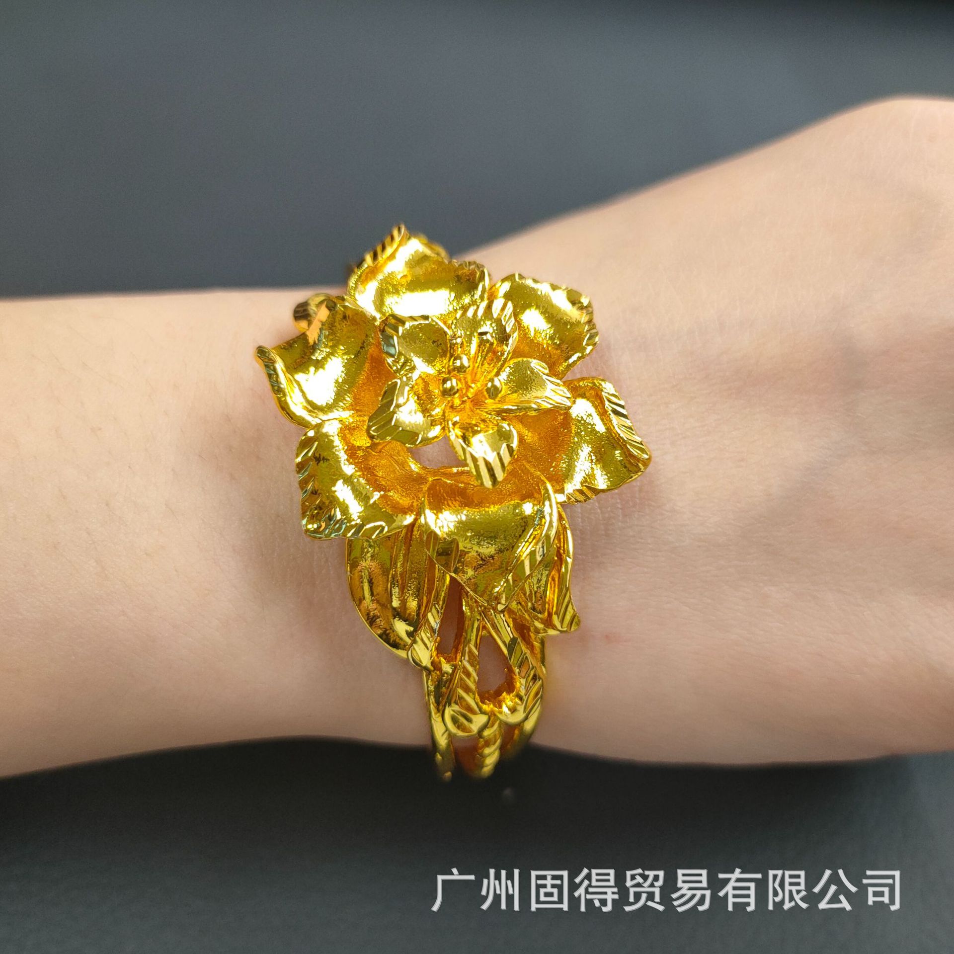 Dubai Imitation Gold Flower Sand Gold Bracelet Kidsren's Xinjiang Dai Ethnic Style Hand Ornaments Kidsren's Jewelry Jewelry Wholesale