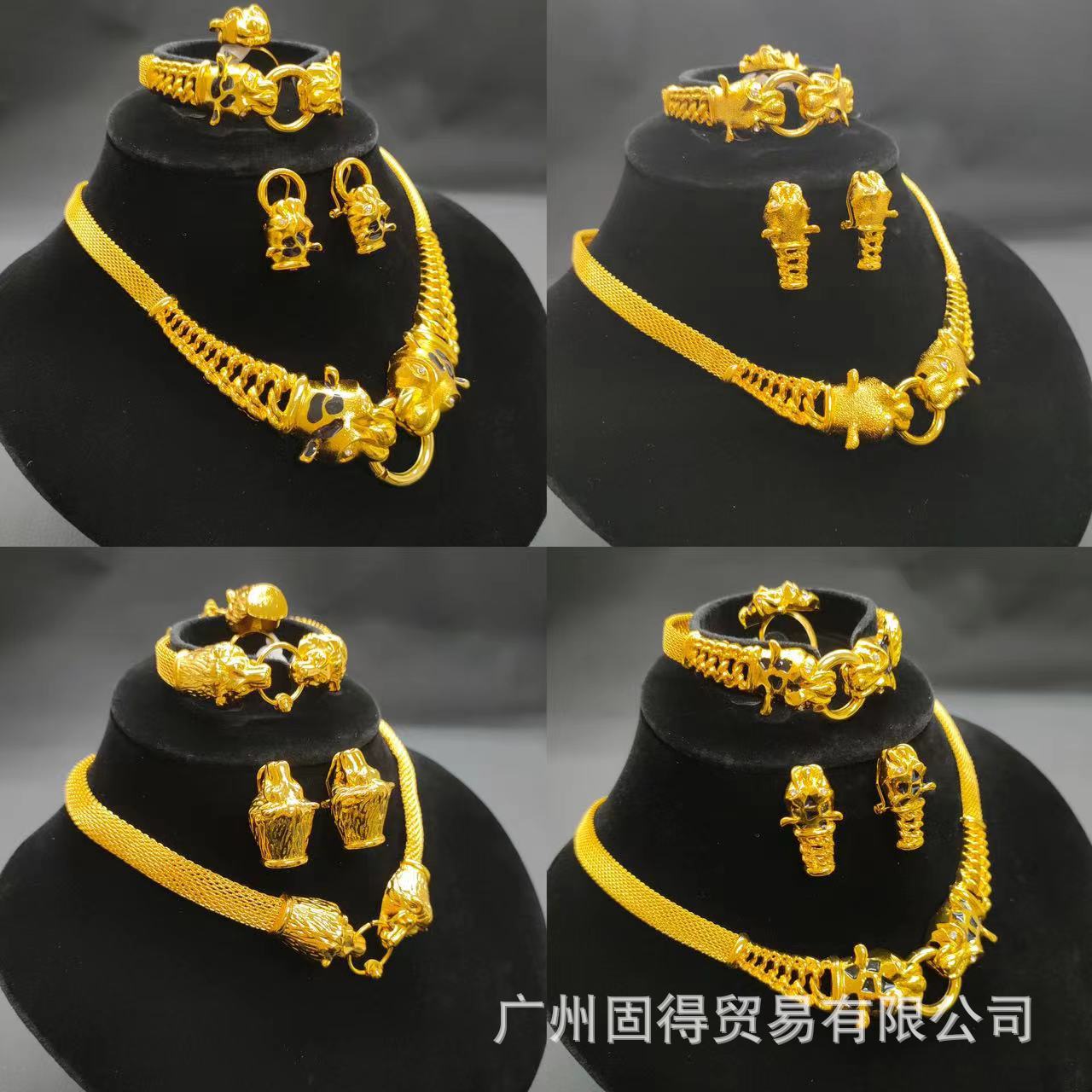 Foreign Trade 24K Alloy Plated Necklace Set Middle East Dubai Jewelry Animal Earrings Ring Bracelet Four-Piece Fashion Set