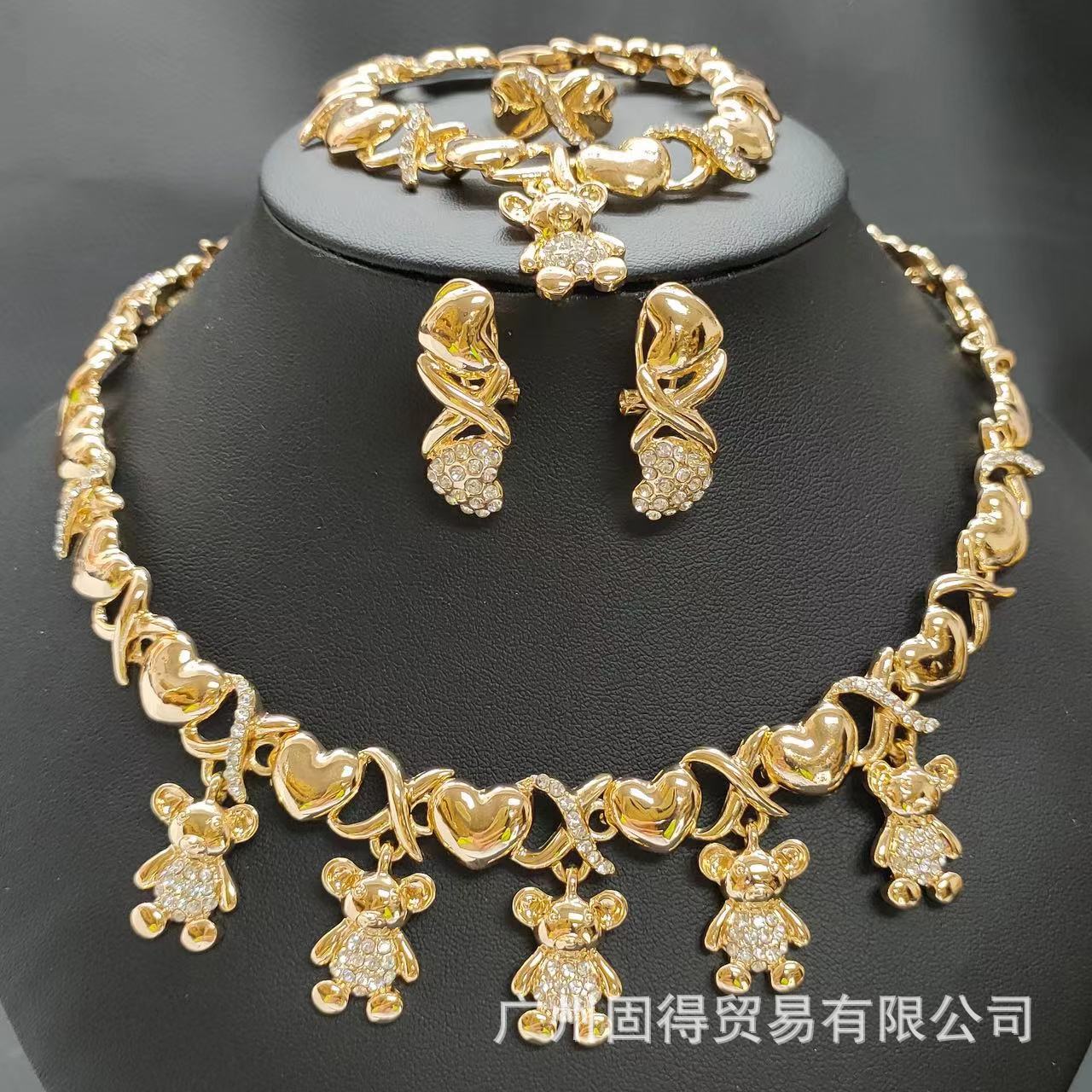 18K Gold Plated Bear Diamond Middle East Dubai Jewelry Necklace Earrings Bracelet Ring Alloy Jewelry Set Wholesale
