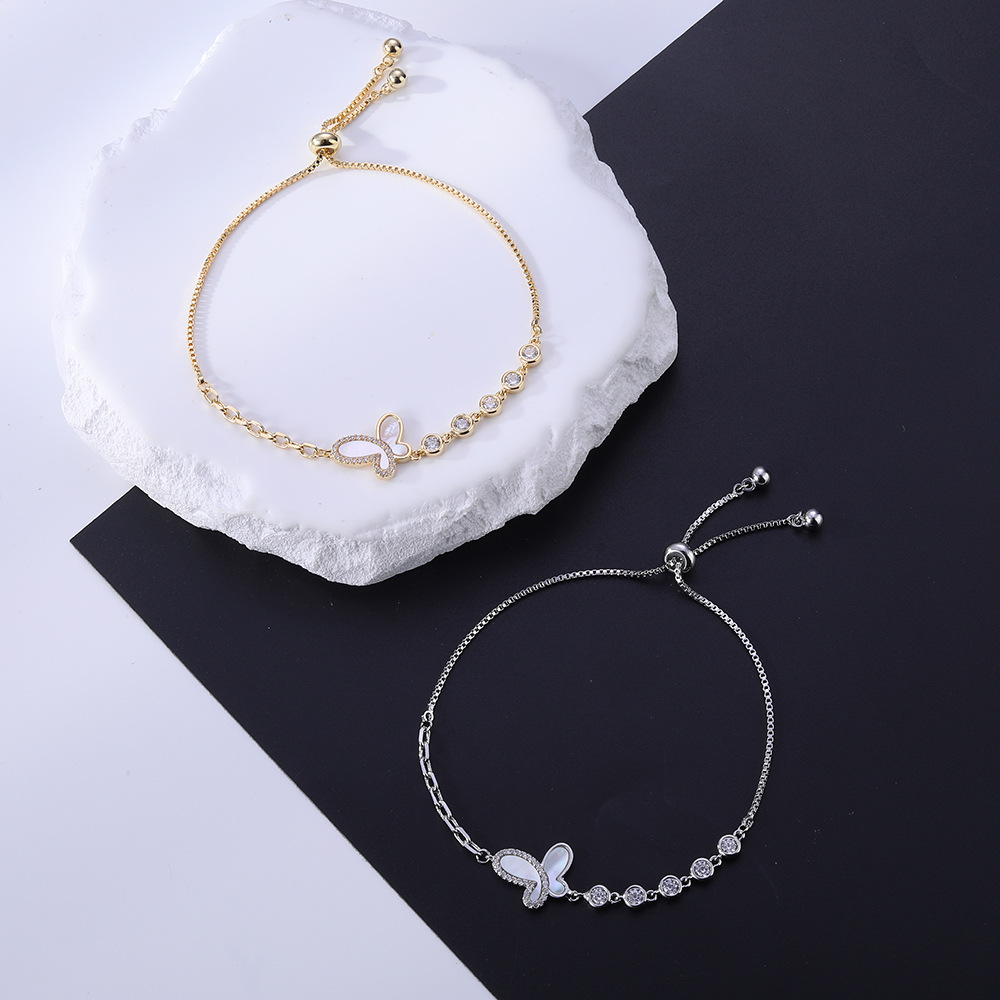 Light Luxury Exquisite Butterfly Bracelet Natural Fritillaria Zircon Inlaid Pull-out Chain Bracelet Cross-border E-commerce Small Bracelet