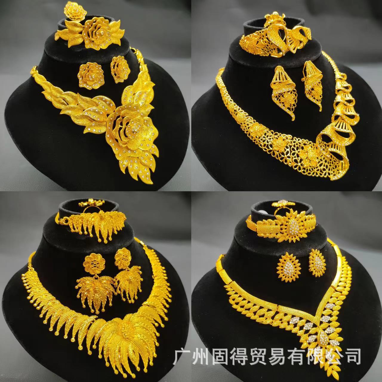 Cross-border Dubai Middle East 24K Gold Jewelry African Bride Jewelry suit Saudi Women Necklace Bracelet Earrings Ring