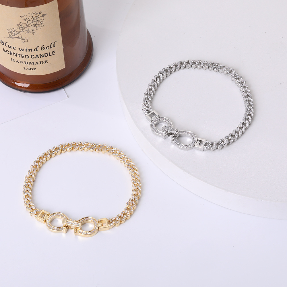 European and American Hip-Hop Horseshoe Buckle Bracelets for Men and Women, Niche Design Cuban Chain Bracelets Full of Diamonds and Micro-Paved Zirconia Trinkets