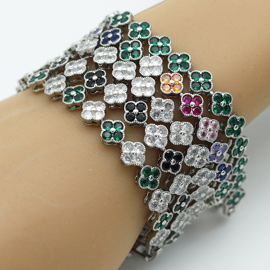 Middle East Cross-border One Opening Zircon Inlaid Four-leaf Clover Bracelet Dubai European and American Women's Dating All-match Jewelry
