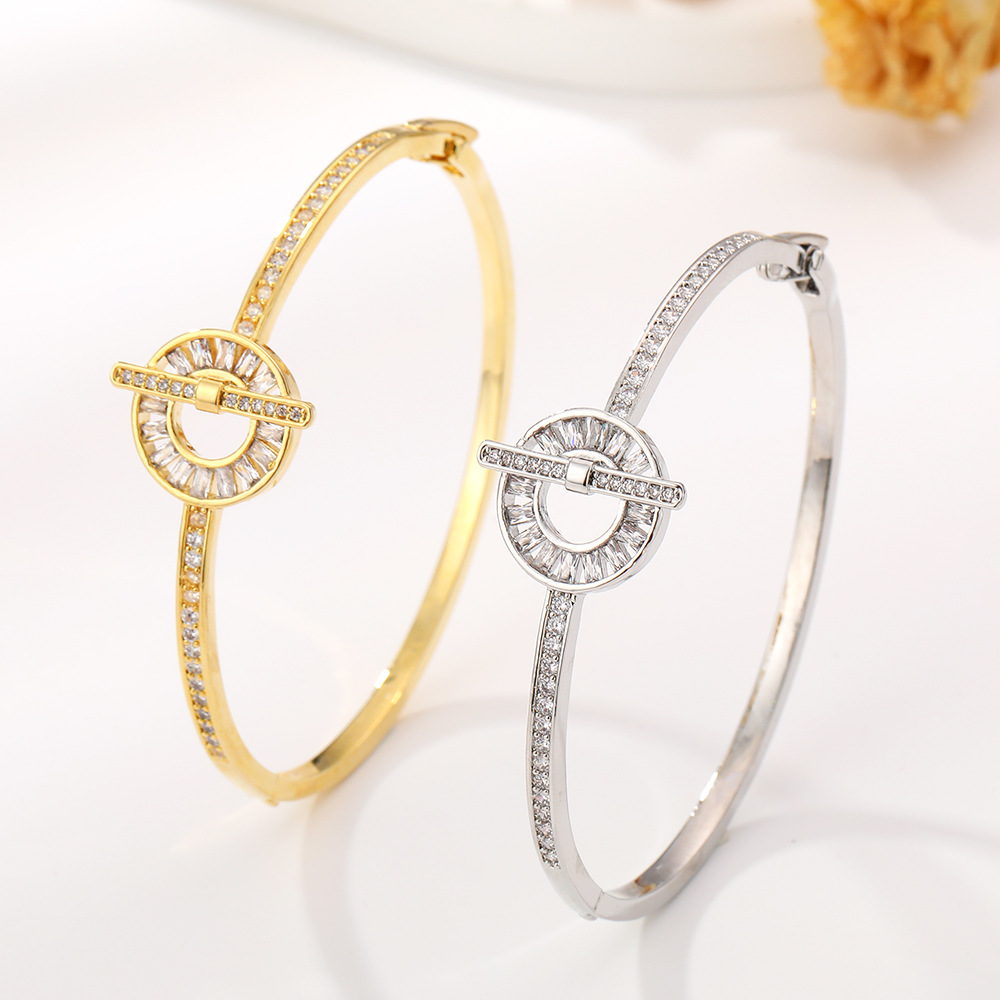 Amazon Hot Selling Zircon Bracelet Korean Style Copper Gold Plated Diamond Circle Slash Jewelry Buckle Light Luxury Women's Bracelet