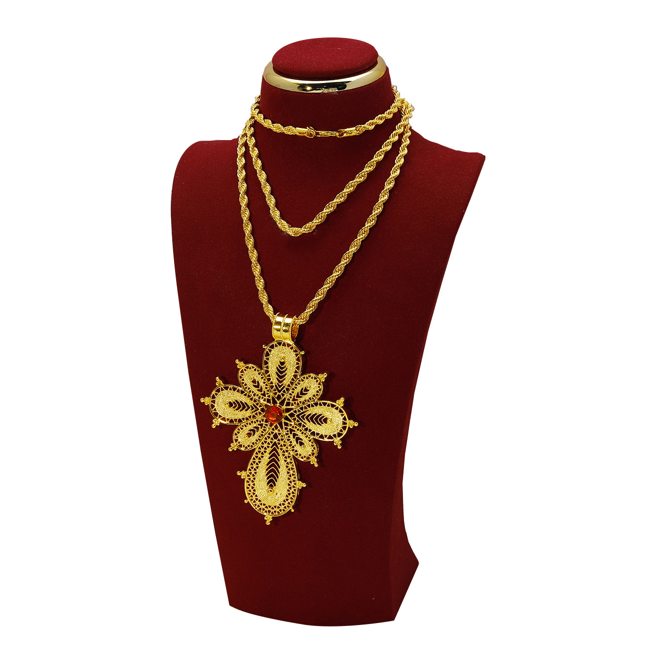 Cross-border Middle East Plated 24K Gold Cross Hollow Necklace Pendant suit Dubai European and American Bride Wedding Jewelry