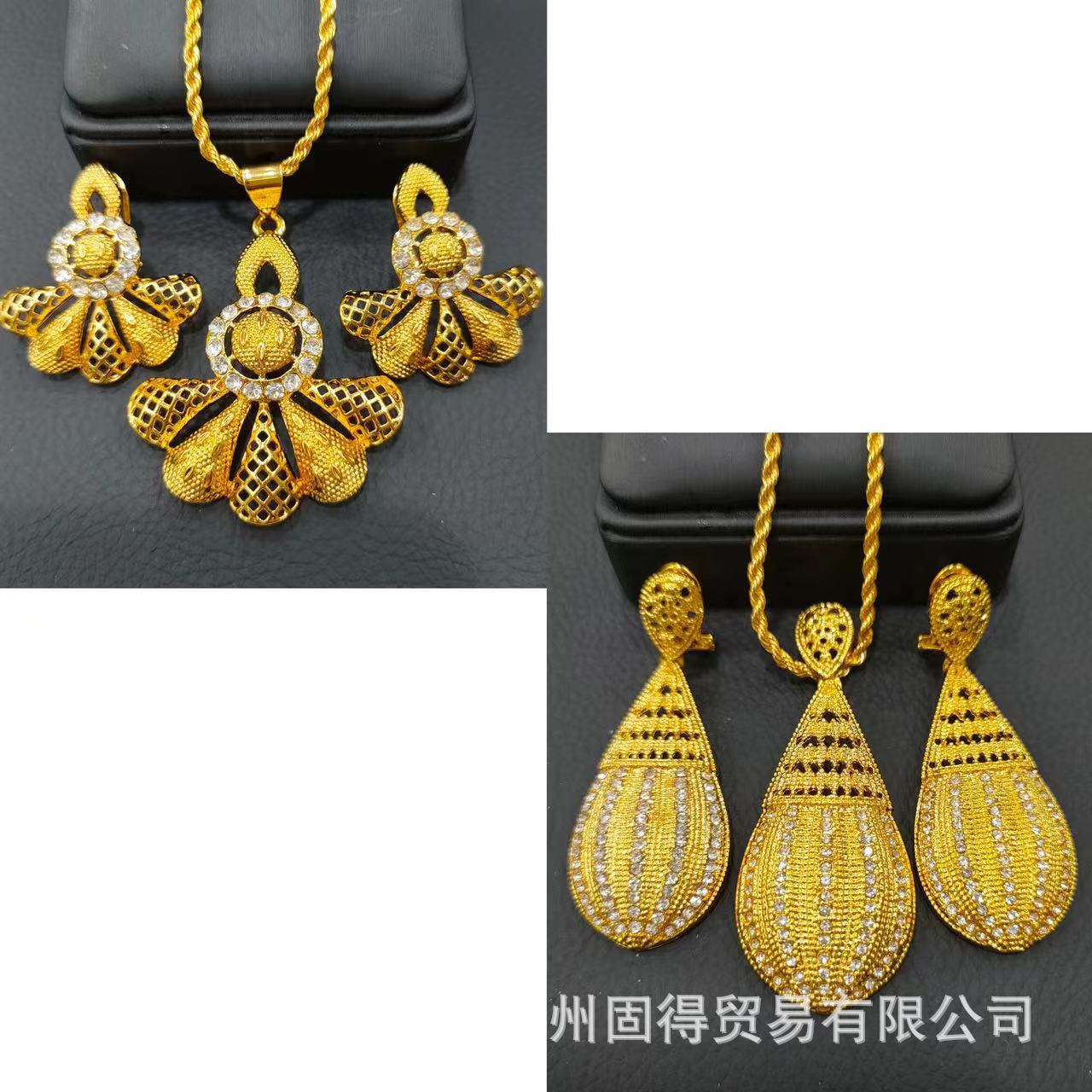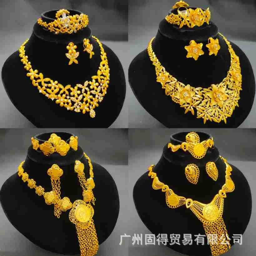 Middle East Dubai 24K Gold-Plated Jewelry Vietnamese Bride Necklace Earrings Jewelry Set Gold Placer Jewel